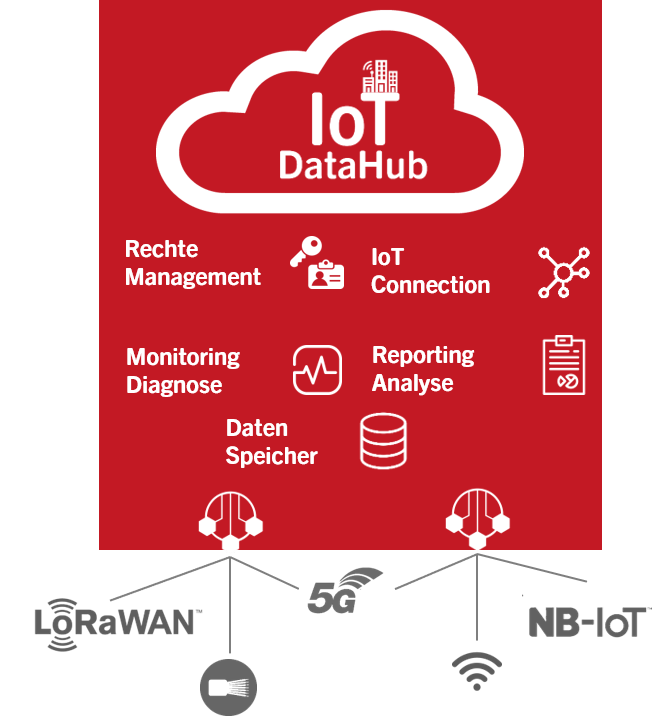 Wir bieten Ihnen eine flexible Plattform als Managed Service. Datenquellen wie LoRaWAN oder NB-IoT können verarbeitet und verwaltet werden. Modernste Software-Architektur bietet Ihnen vollste Freiheiten bei der Umsetzung Ihrer Anwendungsfälle und höchste Sicherheit durch ISO27001 zertifizierten Infrastrukturbetrieb.